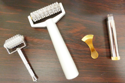 優しく撫でたりさすったりするような 軽い刺激を加える治療法です。 ローラー鍼やイチョウ鍼を使用します。 鍼を刺したりしませんので安心して下さい。