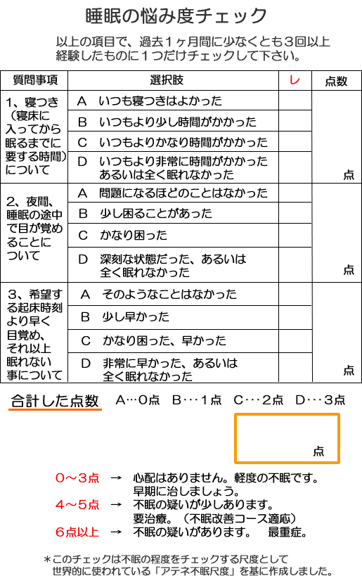 眠りが浅く、直ぐに目が 覚めてしまうタイプです。 老人の不眠や神経質な人に 多いタイプになります。